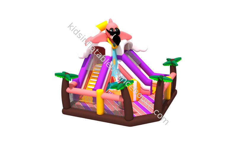 新しいフラミンゴビーチテーマ カラフルなインフレータブルファンシティ ココナッツパーム インフレータブルバウンス スライド付き 商用インフレータブル